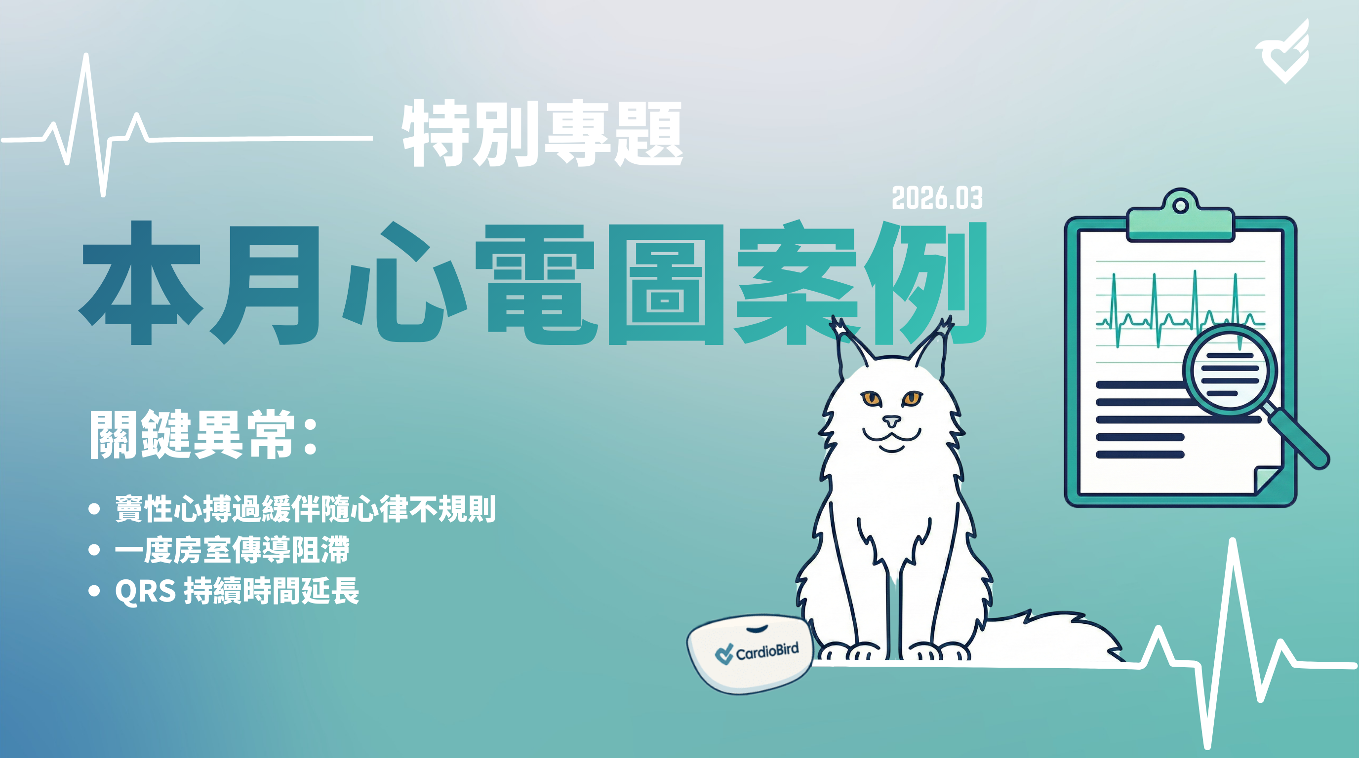 歡迎閱讀 CardioBird 全新月度專題。我們非常高興能推出全新專題系列:「心電圖在日常診療中的應用」。在未來數月,我們將深入探討這項人類醫學領域的常規利器——心電圖(ECG),如何革新您的獸醫日常工作流程。